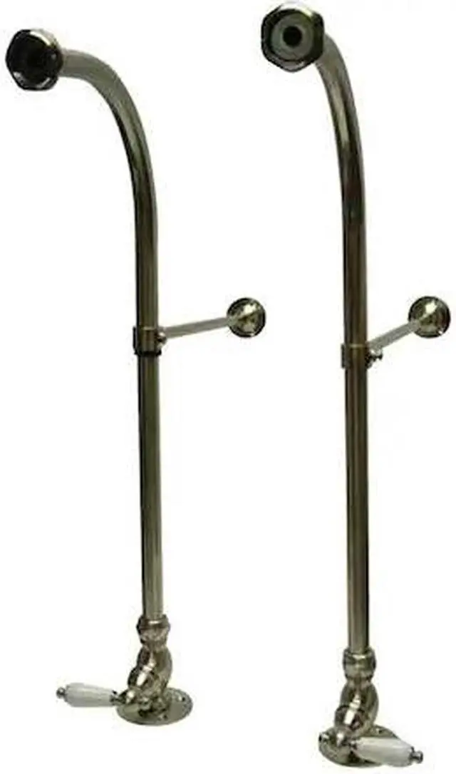 • Satin Nickel• This freestanding water supplies with stop comes in pairs and includes adjustable height wall braces. They are constructed of high quality brass to ensure reliability and durability. Its premier finish resists tarnishing and corrosion.• High Quality Brass Construction• Adjustable Height Wall Brace• 13-3/4 Wall Clearance• 1/4 Turn Ceramic Disk Cartridge• Premier Finish