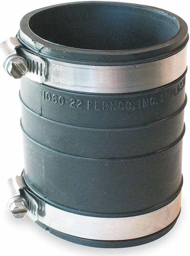 Flexible Coupling, For Nominal Pipe Size 2 in, PVC, 2 in, 2 11/16 in, 3 in, Female, 2 in, 2 3/8 in, 3 in, Female, 3 61/64 in Overall Length. This item has been restricted from sale in the following state (s): []