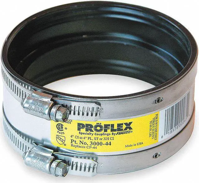 Shielded Transition Coupling, For Nominal Pipe Size 8 in, Neoprene, 8 in, 8 1/2 in, 8 13/16 in, Female, 8 in, 8 5/16 in, 8 13/16 in, Female, 3 13/16 in Overall Length