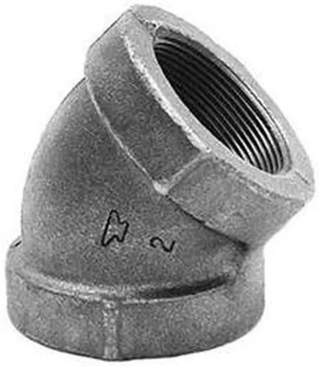 45 Degrees Elbow, Cast Iron, Class Class 125, For Pipe Schedule 40, 1 1/2 in, Female, NPT, 1 1/2 in, Female, NPT, 175 psi @ 150 Degrees F Maximum Operating Pressure. This item has been restricted from sale in the following state (s): []