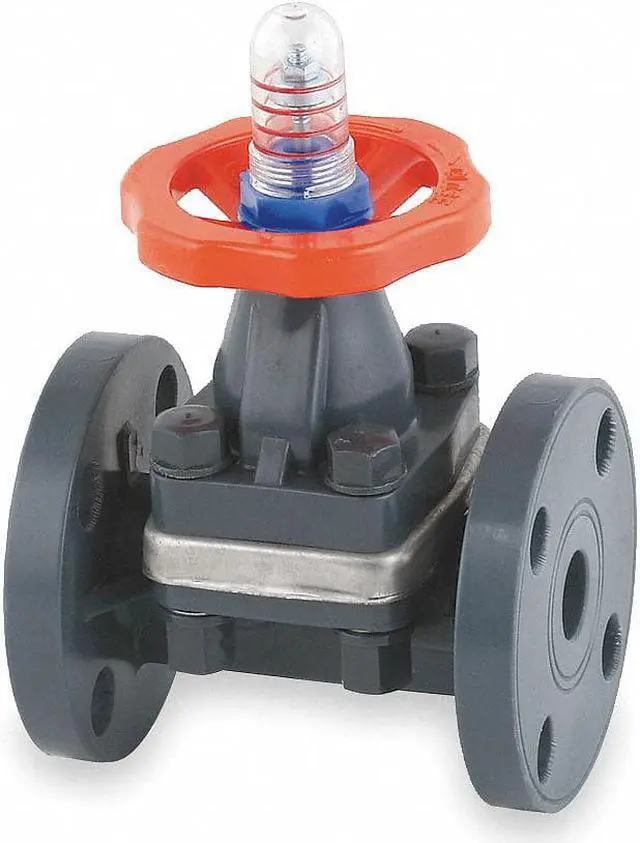 Diaphragm Valve, Valve Design 2-Way, Pipe Size 2 in, Connection Flanged, Coefficient of Volume 48, Length 8 17/64 in, Max. Pressure 150 psi, Ambient Temp. Range 0 Degrees to 140 Degrees F, Fluid Temp. Range 40 Degrees to 140 Degrees F, Diaphragm Material FPM, Body Material PVC, Seal Material FPM. This item has been restricted from sale in the following state (s): []