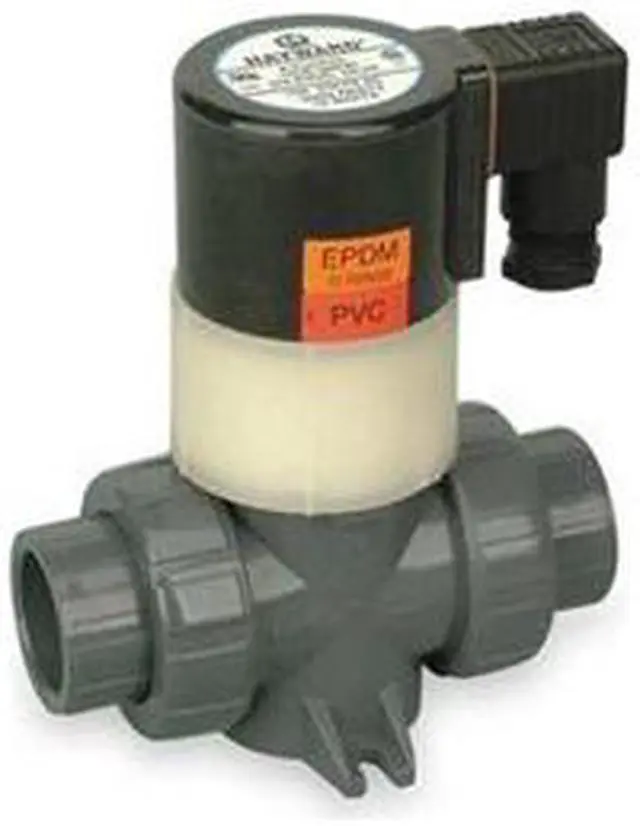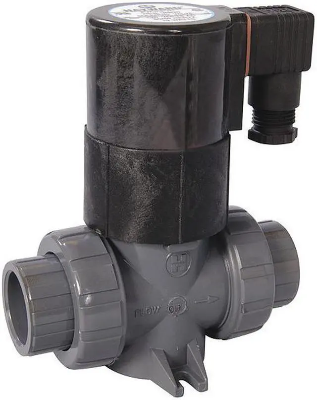Solenoid Valve, Valve Ways 2-Way, Valve Starting Configuration Normally Closed, Valve Type Inline Single, Nominal Pipe Size 1 in, Orifice Diameter 3/8 in, Body Material PVC, Coefficient of Volume (Cv) 3.8, Operating Pressure Differential Air/Inert Gas - Maximum Not Rated, Operating Pressure Differential Fuel Gas - Maximum Not Applicable, Seal Material FPM, Voltage 120V AC, Operating Pressure Differential Fuel Oil - Maximum Not Applicable, Coil Enclosure Without Junction Box, Watertight. This item has been restricted from sale in the following state (s): []