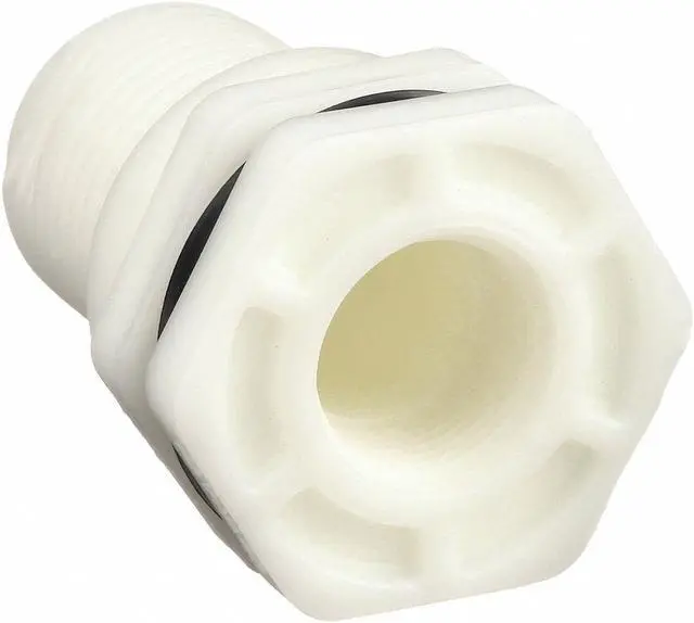 Bulkhead Tank Fitting, Fitting Material Polypropylene, Fitting Material Finish Not Applicable, For Tank Shape Curved, Flat, Gasket Material EPDM, Inside Connection Gender Female, Inside Connection Size 3/4 in, Inside Connection Type Threaded, Maximum Operating Pressure 150 psi @ 70 Degrees F, Maximum Operating Temperature 180 Degrees F, Minimum Operating Temperature 40 Degrees F, Number of Bolt Holes 0, Outside Connection Gender Female, Outside Connection Size 3/4 in. This item has been restricted from sale in the following state (s): []