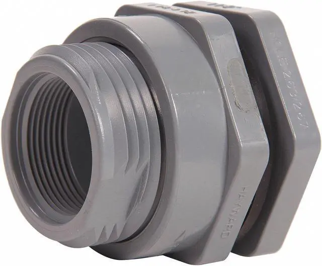 Bulkhead Tank Fitting, Fitting Material CPVC, Fitting Material Finish Not Applicable, For Tank Shape Curved, Flat, Gasket Material FKM, Inside Connection Gender Female, Inside Connection Size 1 in, Inside Connection Type Threaded, Maximum Operating Pressure 150 psi, Maximum Operating Temperature 190 Degrees F, Minimum Operating Temperature 40 Degrees F, Number of Bolt Holes 0, Outside Connection Gender Female, Outside Connection Size 1 in, Outside Connection Type Socket, Overall Length 2 7/8 in. This item has been restricted from sale in the following state (s): []