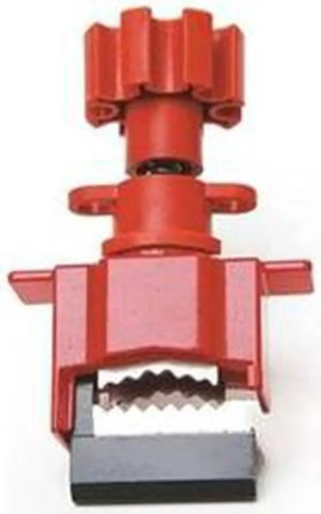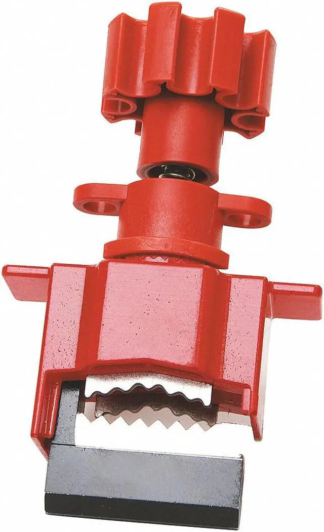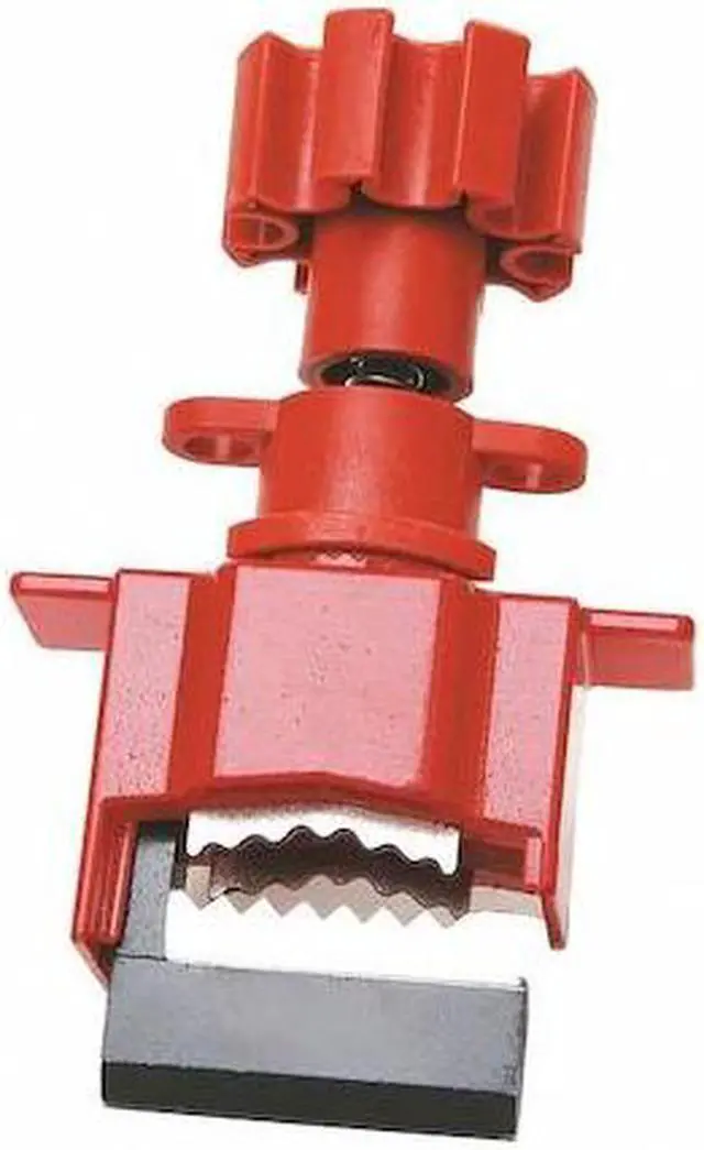 Lockout Valve Base, Red/Black, Material Steel/Nylon, Fits Handle Size 1 in, Max. Valve Handle Thickness 39/64 in, Max. Number of Padlocks 2, Padlock Shackle Max. Dia. 3/8 in, Height 6 in, Width 3 in, Temp. Range 0 Degrees to 250 Degrees F, For Use With Valves. This item has been restricted from sale in the following state (s): []