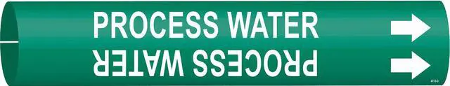 Pipe Marker, Pipe Marker Mounting Style Snap-On Pipe Marker, Pipe Marker Legend Process Water, Legend Text Color White, Character Height 1 1/4 in, Background Color Green, With or Without Arrows With. This item has been restricted from sale in the following state (s): []