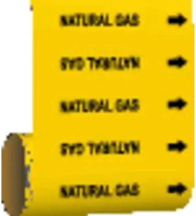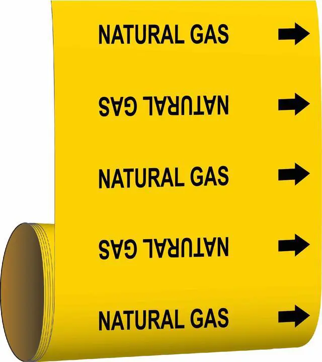 Pipe Marker, Pipe Marker Mounting Style Adhesive Pipe Marker, Pipe Marker Legend Natural Gas, Legend Text Color Black, Background Color Yellow, With or Without Arrows With