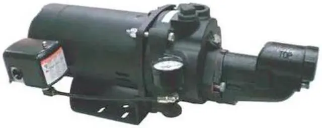 Shallow Well Jet Pump, HP 1/3 hp, Rated Voltage 115/230V AC, Amps 10/ 4.8 A, Ejector Included Yes, Flow Rate @ 10 Ft. Lift @ 30 PSI 7.5 gpm, Flow Rate @ 10 Ft. Lift @ 40 PSI 4.5 gpm, Flow Rate @ 10 Ft. Lift @ 50 PSI 2.8 gpm, Max. Suction Lift 25 ft, Inlet 1-1/4 in NPT, Discharge 1 in NPT, Max. Case Pressure 123 psi, Max. Inlet Pressure 123 psi, Max. Operating Temp. 90, Shut Off Pressure 66 psi, Overall Length 20 3/16, Overall Width 9 1/8, Overall Height 8.