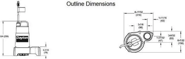 California Proposition 65: This product contains a chemical known to the State of California to cause birth defects or other reproductive harm. Submersible Sump Pump, HP 1/3, Rated Voltage 120V AC, Hz 60 Hz, Amps 6.8 A, Switch Actuation No Switch Included, Switch Electrical Connection No Switch Included, Body Material Cast Iron, Impeller Material Cast Iron, Shaft Seal Material - Pumps Carbon Ceramic, Flow Rate @ 5 Ft. of Head 65 gpm, Flow Rate @ 10 Ft. of Head 57 gpm, Flow Rate @ 15 Ft. of Head 45 gpm, Flow Rate @ 20 Ft. of Head 30 gpm, Max. Head 30 ft, Body Dia. 8 1/2 in, Overall Height 11 3/4 in, Discharge 1 1/2 in FNPT. This item has been restricted from sale in the following state (s): []