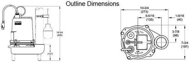 California Proposition 65: This product contains a chemical known to the State of California to cause birth defects or other reproductive harm. Sewage Ejector Pump, HP 4/10, Rated Voltage 120V AC, Phase - Pumps 1, Amps 12.00 A, Body Material Cast Iron, Impeller Material Cast Iron, Shaft Seal Material - Pumps Carbon Ceramic, Switch Actuation Tether Float, Switch Electrical Connection Piggyback, On Point Not Applicable, Off Point Not Applicable, Flow Rate @ 10 Ft. of Head 95 gpm, Flow Rate @ 15 Ft. of Head 70 gpm, Flow Rate @ 20 Ft. of Head 37 gpm, Max. Diameter Solids 2 in, Body Dia. 10 3/4 in, Overall Height 16 3/4 in, Cord Length 20 ft. This item has been restricted from sale in the following state (s): []