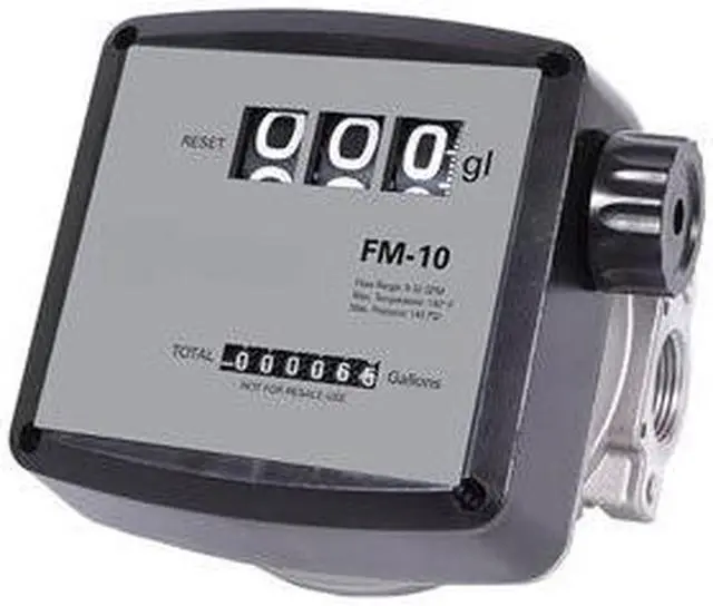 California Proposition 65: This product contains a chemical known to the State of California to cause birth defects or other reproductive harm. Mechanical Flowmeter, Product Type Mechanical Flowmeter, Accuracy +/-1 Percent, Connection Size 3/4 in, Connection Type FNPT, Compatible Flow Material Diesel, Oils, Media Temperature - Maximum 140 Degrees F, Media Temperature - Minimum -10 Degrees F, Viscosity - Maximum 9, 400 SUS, Housing Material Aluminum, Seal Material Buna-N, Wetted Material Aluminum, PBT, Buna-N, Display Type Mechanical, Flow Rate - Maximum 32 gpm, Flow Rate - Minimum 5 gpm, Operating Pressure - Maximum 145 psi. This item has been restricted from sale in the following state (s): []