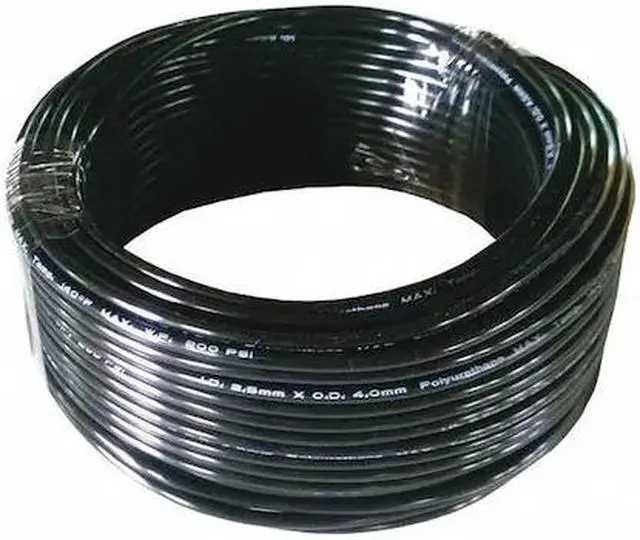 California Proposition 65: This product contains a chemical known to the State of California to cause birth defects or other reproductive harm. Tubing, Application Air, Water, Color Black, Hardness Shore A 98, Inside Diameter 2.5 mm, Jacket Color No Jacket, Jacket Material No Jacket, Material Polyurethane, Material Trade Name Not Applicable, Material Trade Number Not Applicable, Maximum Operating Pressure 200 psi, Maximum Operating Temperature 140 Degrees F, Outside Diameter 4 mm, Overall Length 100 ft, Peristaltic Pump Compatible No, PEX Type Not Applicable, Resistance Properties Abrasion Resistant, Wear Resistant. This item has been restricted from sale in the following state (s): []