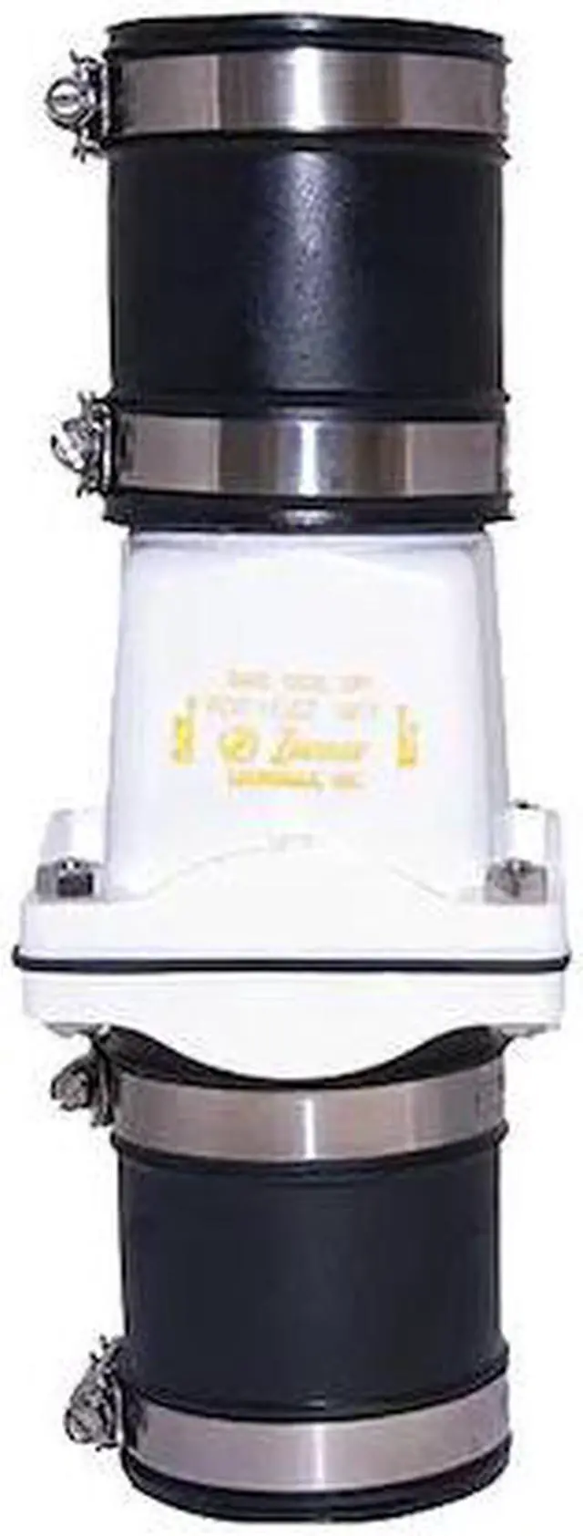 Item - Check Valves Check Valve, Flow Design Single, Mechanism and Body Design Inline Swing, Body Material - Valves PVC, Pipe or Tube Size 2 in, Connection Type Clamp x Clamp, Mounting Orientation Horizontal, Vertical, Seal Material Neoprene, Max. Temp. - Valves 130 Degrees F, Max. Water Pressure - Valves 4.30 psi @ 130 Degrees F, Max. Steam Pressure - Valves Not Rated, Seat Material PVC, Full Flow - Valves Yes, Application - Valves Pumps, Standards BOCA (P. 604.2 )