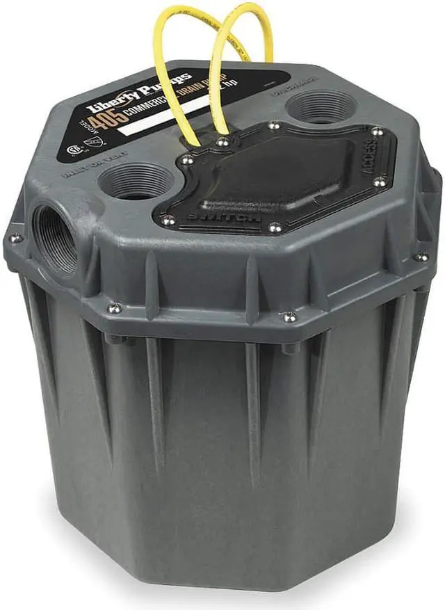 Sink Drain Pump System, HP 1/2 hp, Rated Voltage 208 to 230V AC, Amps 3.5 A, Switch Actuation Vertical Float, Switch Electrical Connection Integral, Pump Body Material Polypropylene, Impeller Material Plastic, Basin Material Polyolefin, Basin Capacity 5.5 gal, Basin Dia. 13 3/4 in, Basin Height 14 1/8 in, Basin Inlet Diameter 2 in, Outlet Diameter 2 in, Vent Size 2 in, Flow Rate @ 5 Ft. of Head 48.0 gpm, Flow Rate @ 10 Ft. of Head 44.0 gpm, Flow Rate @ 15 Ft.