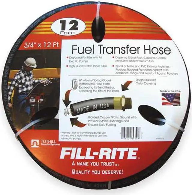 California Proposition 65: This product contains a chemical known to the State of California to cause birth defects or other reproductive harm. If you need to transfer fuel, the FILL-RITE FRH07512 Fuel Hose is the ideal tool for the job. It has a temperature rating of -22 degrees to 130 degrees F. With an inlet and outlet of 3/4 in NPT, this 12 ft long hose can be used with refined petroleum liquids. The hose has a max pressure of 50 psi and a diameter of 3/4 in. Made from nitrile material, it features a straight wireway length of 12 ft. If you want a durable fuel hose that will meet your needs, choose the FILL-RITE FRH07512 Fuel Hose.. This item has been restricted from sale in the following state (s): []