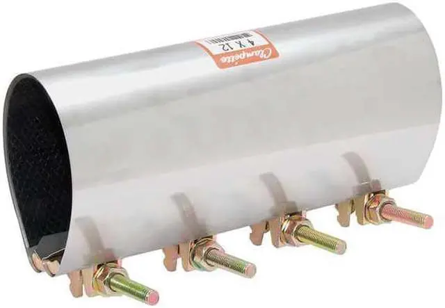 Repair Clamp, Four Bolt, Pipe Size (In. ) 4, Tube Size (In. ) 4, Material of Construction Stainless Steel Type 304, Max. Pressure 150 psi, Length (In. ) 12, Bolt Size (In. ) 7/16, Metal Detectable Yes, Temp. Range -40 Degrees to 212 Degrees F, Includes Nuts And Washer. This item has been restricted from sale in the following state (s): []