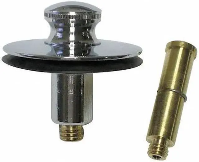 Watco Push Pull Bathtub Stopper with a 3/8 in. and 5/16 in. combo Pin Adapter. This bathtub stopper is great for a repair, upgrade or to replace. Bathtub drain will need to have cross bars with either a 3/8 in. or 5/16 in. diameter for the pin adapter to thread into the drain. This Watco stopper is a great addition to existing bathtub accessories. Watco, The Choice of Professionals and Always A Step Ahead.