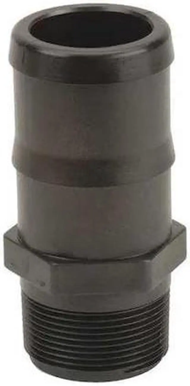 Barbed Hose Fitting, For Hose I. D. 2 in, Rigid, Fitting Shape Straight, Fitting Material Polypropylene x Polypropylene, Hex Head Size 2 1/16 in, Vacuum Rating Not Rated, Hex, Barb Size 2 in, Hose Fitting A Gender Male, Hose Fitting B Gender Male, Hose Fitting A Size 2 in, Hose Fitting B Size 1 1/2 in, Hose Fitting A Connection Type Hose Barb, Hose Fitting B Connection Type NPT, Polypropylene, Black, Reusable Yes, No, Temp. Range -20 Degrees to 150 Degrees F, Thread Size 1-1/2 in, Thread Type NPT.
