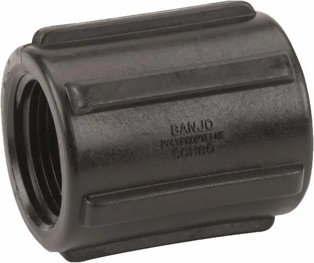 Coupling, Pipe Fitting Material Polypropylene, Fitting Schedule/Class Schedule 80, Pipe Size - Pipe Fitting 3/4 in, Fitting Connection Type FNPT x FNPT, Color Black, Max. Pressure 150 psi, Temp. Range -20 Degrees to 150 Degrees F