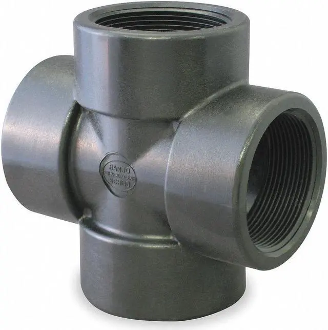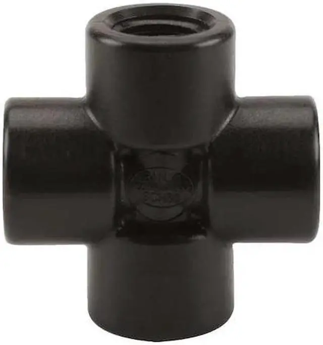 Cross, Pipe Fitting Material Polypropylene, Fitting Schedule/Class Schedule 80, Pipe Size - Pipe Fitting 1/2 in, Fitting Connection Type FNPT x FNPT x FNPT x FNPT, Color Black, Max. Pressure 150 psi, Temp. Range -20 Degrees to 150 Degrees F. This item has been restricted from sale in the following state (s): []
