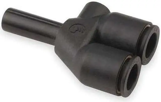 Push-Fit Wye Fitting, Application Air, Color Black, Fitting Side A Connection Type Push-to-Connect, Fitting Side B Connection Type Push-to-Connect, Fitting Side C Connection Type Push-to-Connect, Material Grade Not Applicable, Includes Pre-Applied Thread Sealant Pre-Applied Thread Sealant Not Included, Fitting Side A Tube Outer Diameter 1/4 in, Fitting Side B Tube Outer Diameter 1/4 in, Fitting Side C Tube Outer Diameter 1/4 in, Fitting Material Brass, Fiberglass-Reinforced Nylon. This item has been restricted from sale in the following state (s): []