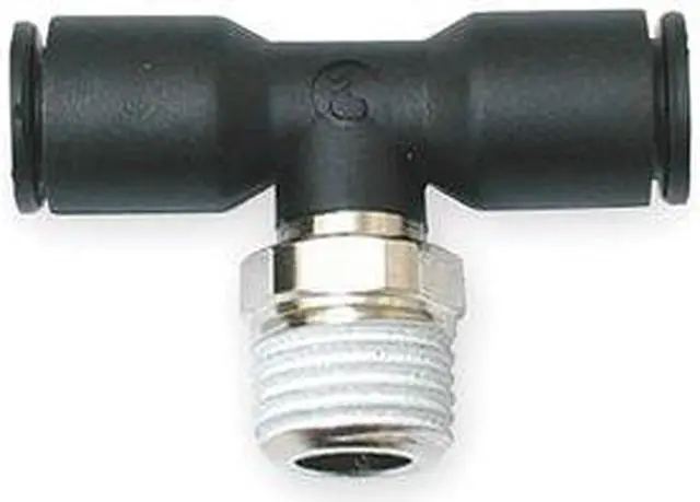 Push-Fit Tee Fitting, Application Air, Cutting Fluids, Inert Gases, Color Black, Fitting Side A Connection Type Push-to-Connect, Fitting Side B Connection Type Push-to-Connect, Fitting Side C Connection Type MNPT, Material Grade Not Applicable, Includes Pre-Applied Thread Sealant Pre-Applied Thread Sealant Included, Fitting Side C Pipe Size 1/8 in, Fitting Side A Tube Outer Diameter 1/8 in, Fitting Side B Tube Outer Diameter 1/8 in, Fitting Material Fiberglass-Reinforced Nylon. This item has been restricted from sale in the following state (s): []