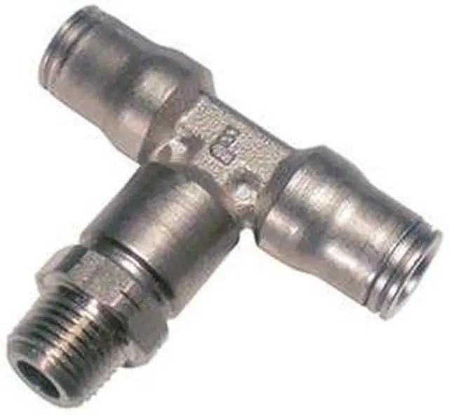 Push-Fit Tee Fitting, Application Food Processing, Harsh Detergents, Oils, Potable Water, Steam, Color Silver, Fitting Side A Connection Type MBSPT, Fitting Side B Connection Type Push-to-Connect, Fitting Side C Connection Type Push-to-Connect, Material Grade C36000, Fitting Side A Pipe Size 1/4 in, Includes Pre-Applied Thread Sealant Pre-Applied Thread Sealant Not Included, Fitting Side B Tube Outer Diameter 8 mm, Fitting Side C Tube Outer Diameter 8 mm, Fitting Material Brass. This item has been restricted from sale in the following state (s): []