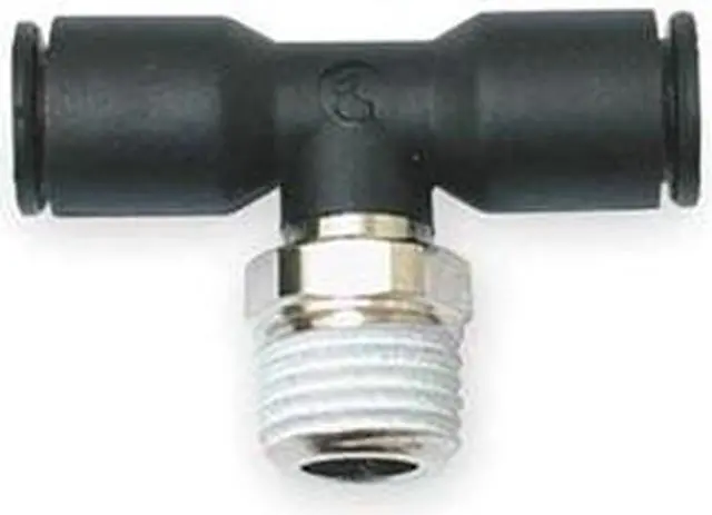 Push-Fit Tee Fitting, Application Air, Cutting Fluids, Inert Gases, Color Black, Fitting Side A Connection Type Push-to-Connect, Fitting Side B Connection Type Push-to-Connect, Fitting Side C Connection Type MUNF, Material Grade Not Applicable, Includes Pre-Applied Thread Sealant Pre-Applied Thread Sealant Included, Fitting Side A Tube Outer Diameter 5/32 in, Fitting Side B Tube Outer Diameter 5/32 in, Fitting Material Fiberglass-Reinforced Nylon, Maximum Operating Pressure 290 psi. This item has been restricted from sale in the following state (s): []