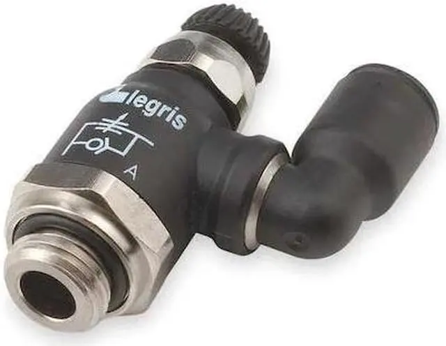 Flow Control Valve, Directions Controlled 1, Valve Inlet Port 6mm Push To Connect, Valve Outlet Port 1/4 in BSPP, Valve Max. Pressure Rating 145 psi, Pressure Range 14.5 to 145 psi, Max. Temp. 158 Degrees F, 360 Degrees Rotation, Pneumatic Valves Product Group Flow Control Valve. This item has been restricted from sale in the following state (s): []
