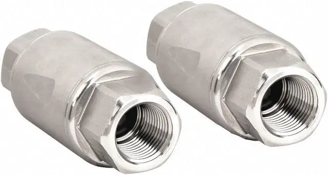 Item - Check Valves Check Valve, Flow Design Single, Mechanism and Body Design Inline Spring, Body Material - Valves 316 Stainless Steel, Pipe or Tube Size 1/2 in, Connection Type FNPT x FNPT, Cracking Pressure 3.6 psi, Mounting Orientation Horizontal, Vertical, Seal Material FKM, Max. Temp. - Valves 356 Degrees F, Min. Temp. - Valves -4 Degrees F, Max. Water Pressure - Valves 580 psi, Max. Steam Pressure - Valves Not Rated, Seat Material FKM, Spring Material 302 Stainless Steel.