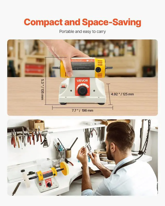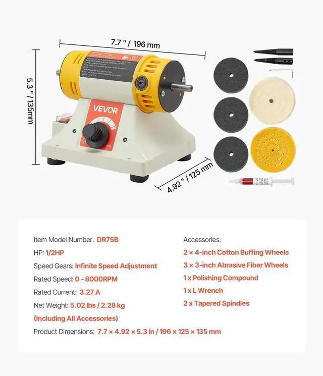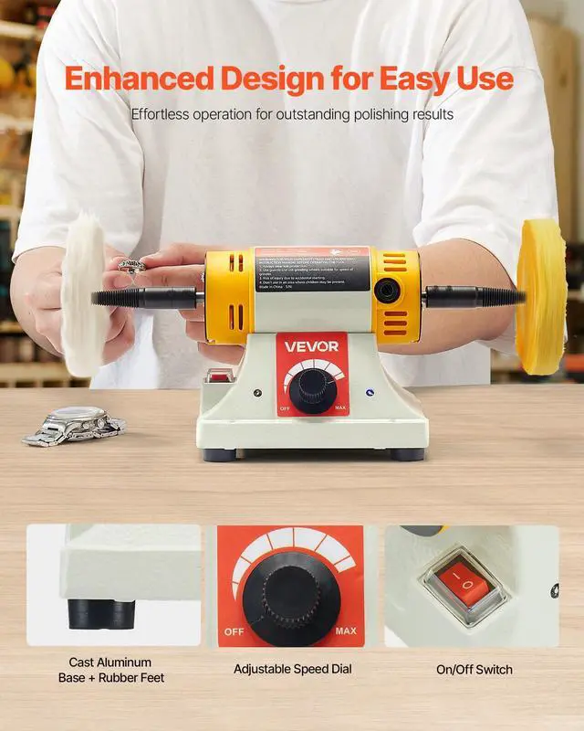 With adjustable speeds ranging from 0 to 8,000 RPM, this bench polishing buffing machine effortlessly adapts to different materials. From car maintenance to jewelry crafting, it’s your go-to tool for polishing metal, wood, plastic, etc