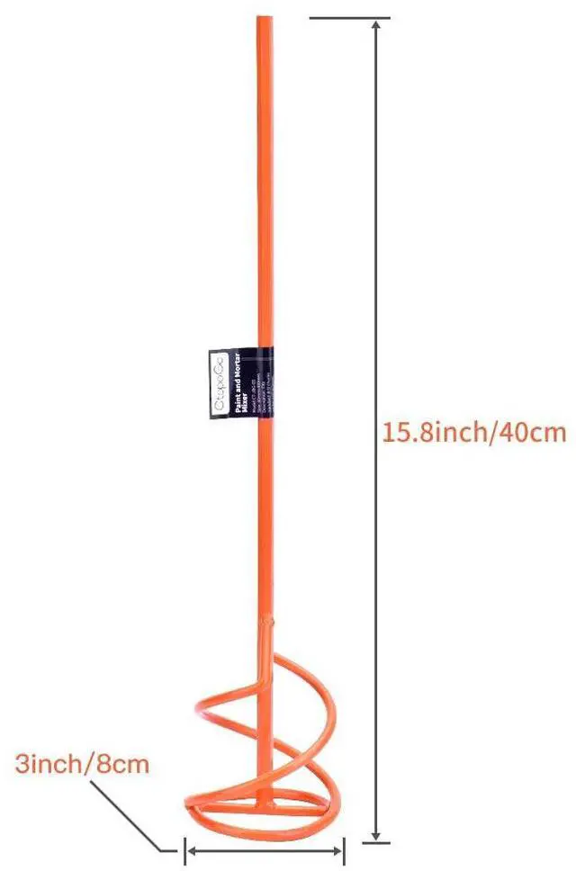 We are proud to present you this Paint & Mortar Mixer, it measures 15.8 Inches(40cm) Electric drill attachment used for mixing. Just attach the mixer in your electric drill chuck and mix with ease. It's ideal for mixing paint or whatever needs mixing right in the provided 1-5 gallon can or bucket 1-5 gallons.