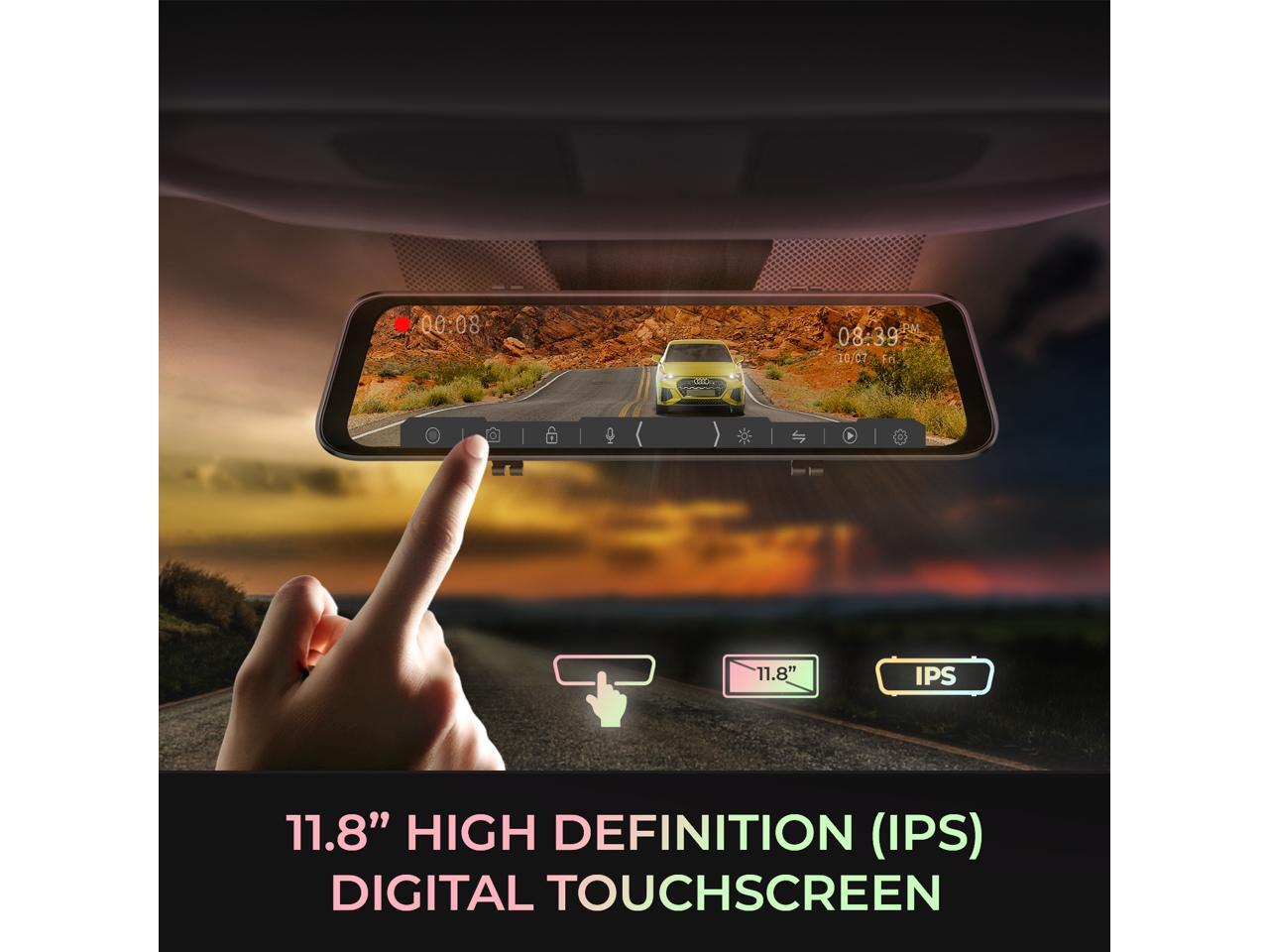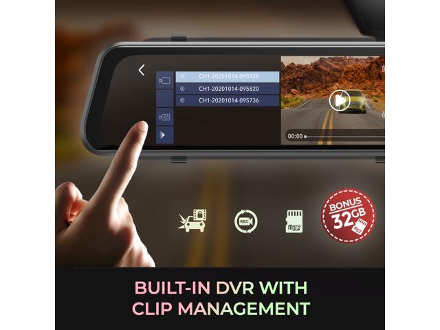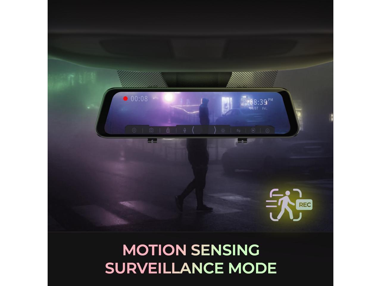 - Additional Features: This rearview mirror dash cam supports g-sensor, loop recording, parking monitoring and motion detection.