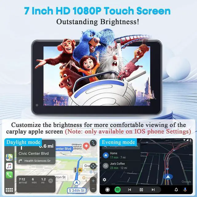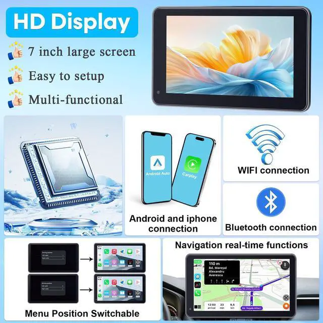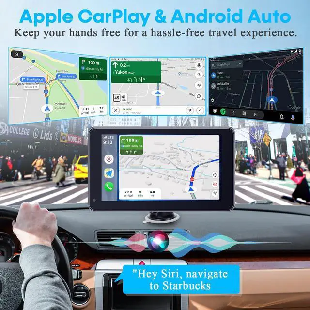 3-Min Easy Install Portable Wireless Carplay Screen: Plug-Play Support Apple CarPlay & Android Auto - 7 Inch HD 1080P Car Touchscreen Upgrade Voice Control GPS Navigation for Commuters & Older Cars