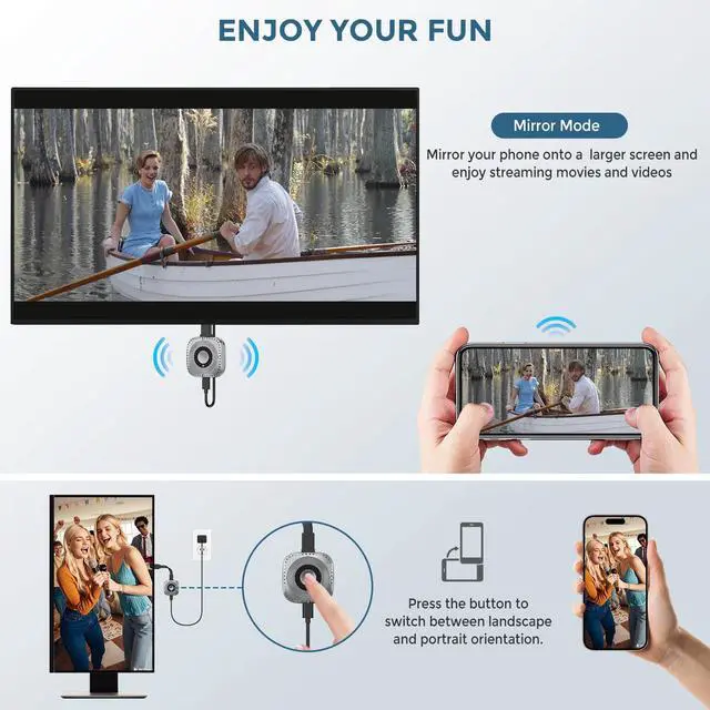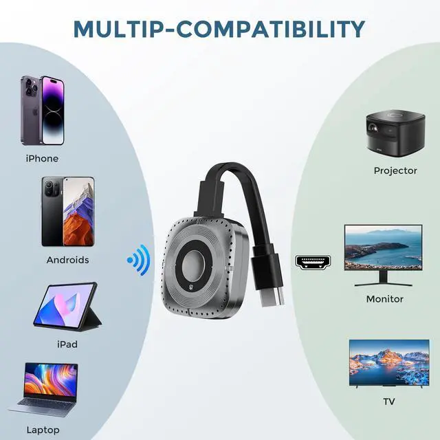 This compact and portable wireless HDMI display dongle adapter is ideal for business presentations and life on the go. Its powerful chipset ensures compatibility with a wide range of HDMI output devices, includinglaptops, smartphones, tablets and more.Suitable for ios, andriod, windows, mac os etc.