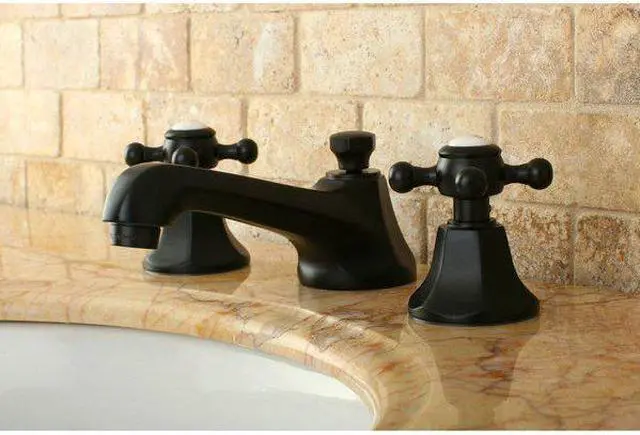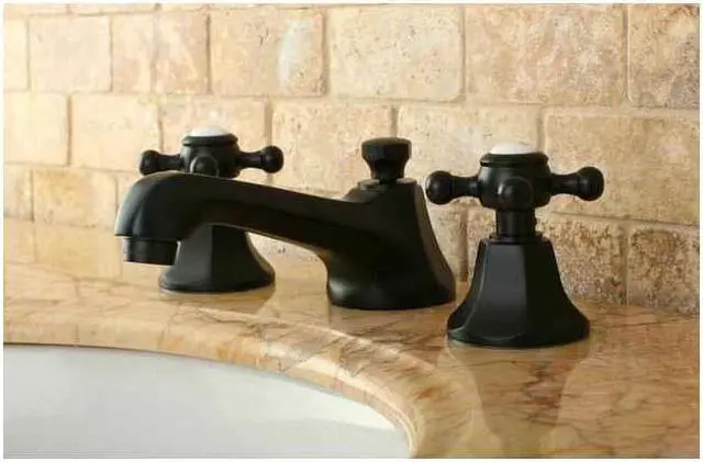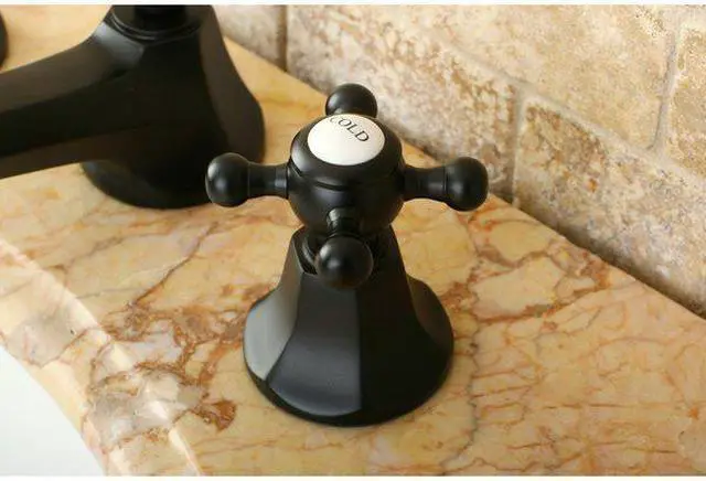 Two Handle Deck Mount- 3 Hole Sink Application- 8 in. to 16 in. Widespread- 3 hole 8 in. to 16 in. center spread installation- Fabricated from solid brass material for durability and reliability- Premium color finish resist tarnishing and corrosion- 1/4 turn On/Off water control mechanism- 1/2 in. IPS male threaded shank inlets- Ceramic disc cartridge- 2.2 GPM (8.3 LPM) Max at 60 PSI- Integrated removable aerator- 5-1/2 in. spout reach from faucet body- 2-7/8 in. overall height.FeaturesDrip-free ceramic cartridge systemDesigned for a lifetime of performanceMeets ASME A112.18.1- ANSI/NSF 61 Sec. 9 codeAll mounting hardware includedHandle type - BX.Finish - Oil rubbed Bronze.