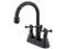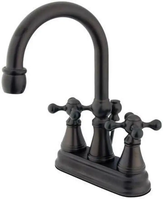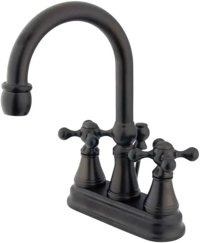 Two Handle Deck Mount- 3 Hole Sink Application- 4 in. Centerset- 3 hole 4 in. center spread installation- Fabricated from solid brass material for durability and reliability- Premium color finish resist tarnishing and corrosion- 1/4 turn On/Off water control mechanism- 1/2 in. IPS male threaded shank inlets- Ceramic disc cartridge- 2.2 GPM (8.3 LPM) Max at 60 PSI- Integrated removable aerator-FeaturesDrip-free ceramic cartridge systemMatching brass pop-up drain included4-7/8 in. spout reach9-3/8 in. spout height5-3/4 in. spout clearanceHandle Type - KXFinish - Oil rubbed Bronze