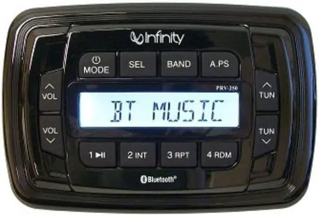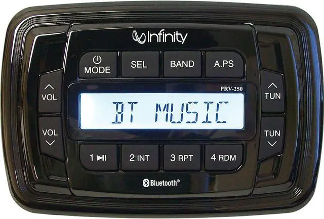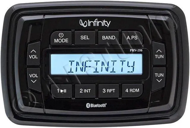 Infinity PRV250 Marine Flash Audio Player - iPod/iPhone Compatible - Single DIN - Detachable Faceplate In-dash - LCD Display - MP3, WMA - AM, FM - 18, 12 x FM, AM Preset - Bluetooth - USB -