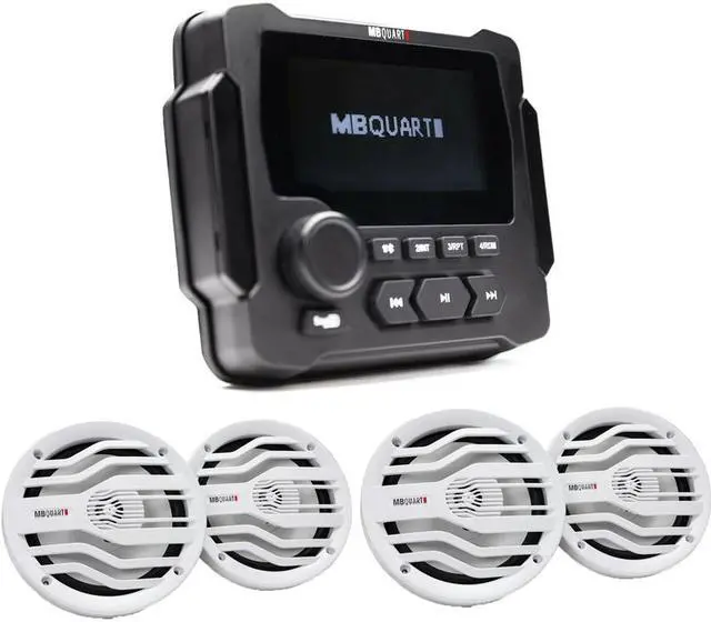 MB Quart GMR-LCD 3.5" LCD Marine Multimedia Receiver & NK2-116W 6.5" 2-Way Coaxial Marine Speakers (2 pair)