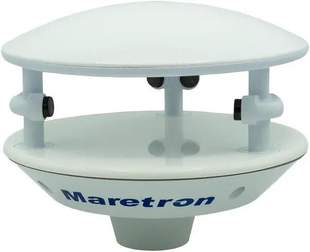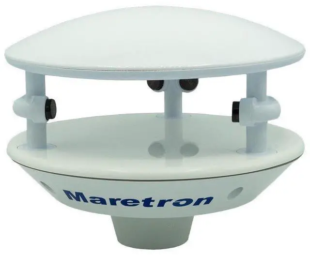 Maretron's outdoor weather station measures wind speed and direction, air temperature, barometric pressure, and relative humidity. The wind measurement is performed using ultrasonic sensors, which means there are no moving parts to wear out or get caught in the rigging.