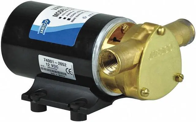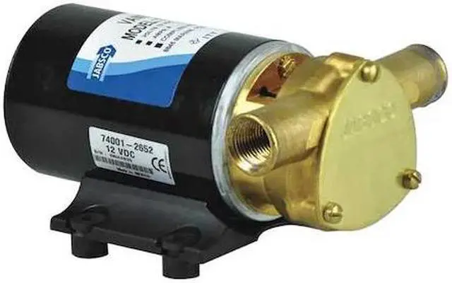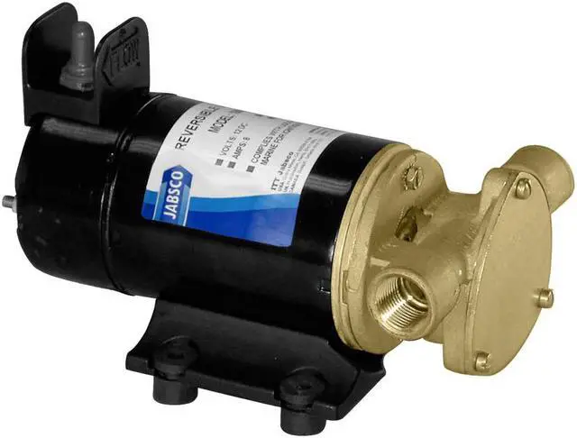Reversible Vane PumpDiesel Transfer PumpFlow rate: 7.9 USgallons/min)Self-priming from dry up to 3ftThe Jabsco Reversible Rotary Vane Pump is ideal for transferring diesel fuel. It is self-priming to about three feet and can pump against a discharge head up to twenty feet. With its integral on-off reversing switch, it is ideal for moving fuel between port and starboard fuel tanks.