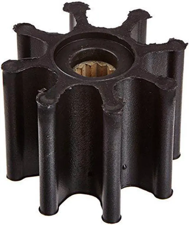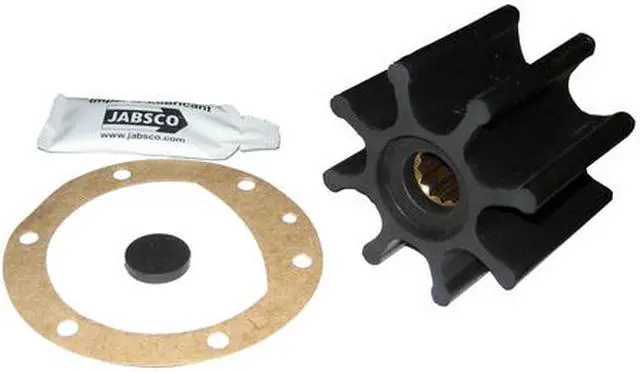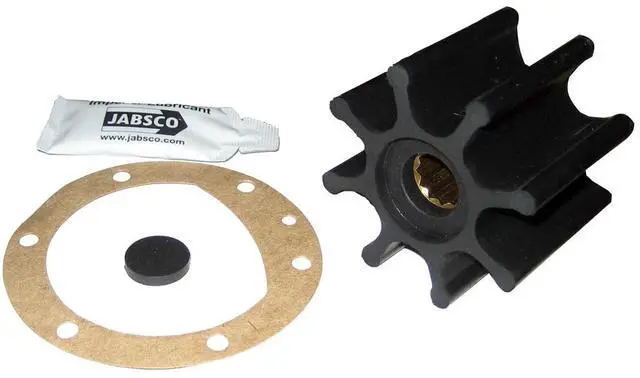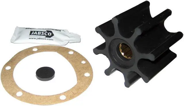 Material: BrassJabsco flexible impellers can be fitted to most makes and models of bronze flexible impeller engine cooling, bilge, transfer and general purpose pumps. Jabsco flexible impellers are subjected to rigorous quality processes to ensure reliable, efficient and long lasting performance. Replace all impellers at least once every year, or sooner, depending on the engine duty. When the installation is correct an impeller may last for several years, but it is always advisable to stick to a schedule of preventative, rather than corrective, maintenance. Replacing impellers is easy. By removing the end cover screws, it is possible to remove the impeller by using either a Jabsco Impeller Removal Tool, or channel lock pliers, to grip the hub of the impeller. Don? t use screwdrivers as they may damage the face of the pump body, causing leaks, and they can be dangerous in confined spaces. Always carry spare impellers on board in case of emergency. The impeller is one of the most vital components of the engine cooling system and should always be treated as such. Always grease new impellers.