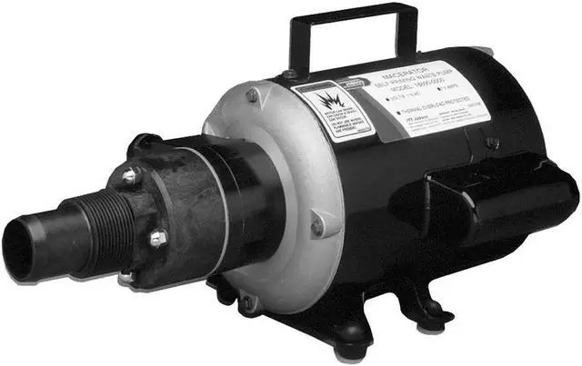 115V AC MaceratorThe Jabsco AC macerator pump unit is the ideal answer to waste handling problems for marine, recreational vehicle and domestic uses. The macerator section grinds waste down to a particle size of 1/8" maximum so it can be pumped easily through a 1" hose discharge line. The pump is self-priming, permitting the unit to be mounted above or below the tank in a convenient location. For optimal efficiency, locate pump as close to the waste source as practical. Empties a 30 gallon holding tank in only 3 minutes. The waste pump will macerate and pump all waste and tissue normally found in marine waste systems. IT WILL NOT HANDLE HARD SOLID OBJECTS, SANITARY NAPKINS OR RAGS.SpecificationsImpeller NitrileMacerator Cast Bronze Cutter Plate reducesparticle size to 1/8" maximumSeal Lip TypePort Type Inlet - 1-1/2" External Pipe ThreadOutlet - 1" ID Hose BarbMotor 115 Vac, AC Induction TypeSingle Phase, 60 HzThermal Overload ProtectionWeight 7.7 (kg) 17 (lb)WARNING: This product can expose you to chemicals including NICKEL (METALLIC) which is known to the State of California to cause cancer. For more information go to P65Warnings.ca.gov.