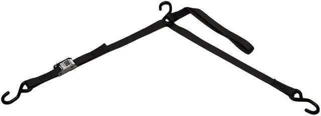 Designed with a built-in soft hook to protect the gel coat against chafing from the hook, our cam buckle tri-down features a durable nylon webbing and vinyl-coated steel S-hooks.