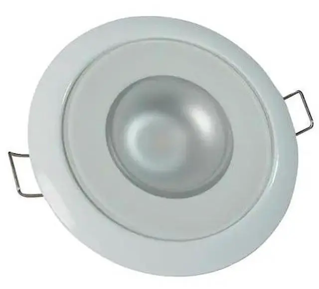 Mirage - Flush Mount Down Light - Glass Finish/White Bezel - Warm White Dimming Lumitec's Mirage down lights remain the best performing down light on the market today. Utilizing the most efficient emitters commercially available, Mirage boasts incredible output and a profile that is among the slimmest in the industry. In field studies Mirage exceeded the output of 20 watt halogens. * Equally suited to elegant salons or no-nonsense T-tops. (*6 watt devices will exceed output of 20 watt halogens, 3 watt devices will exceed output of 10 watt halogens).