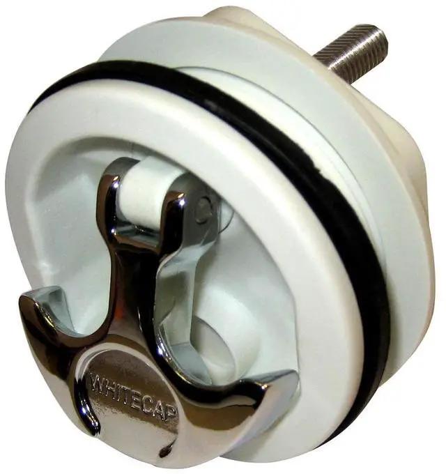 Freshwater Use OnlyFeatures: Nylon Body and CP Zamac handle non-locking T-Handle latchShort Offset Cam BarNylon body is whiteNeoprene O-ringShaft is 1-3/8" long Chrome Plated Zamac parts should be installed on fresh water boats only
