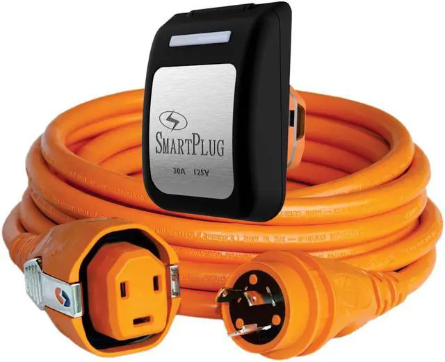 The 30A 125V/250V cordset comes with a cool blue LED Power indicator light that glows when power is on. The 30A 125V/250V Marine cordset provides a super flexible cord that can be tightly coiled even in cold weather. The cordset is available in 25’ & 50’ lengths with the SmartPlug connector for the boat side and the industry standard twist-type connector for the marina power pedestal. SmartPlug marine cords have tinned wire to minimize corrosion.