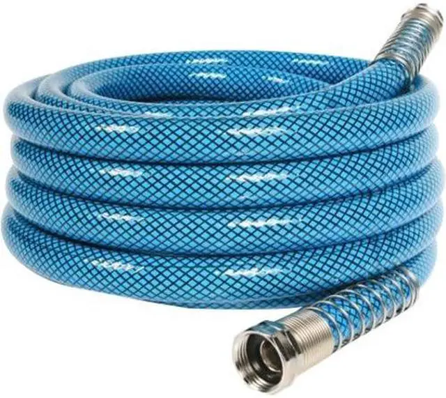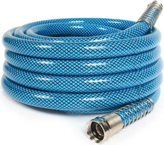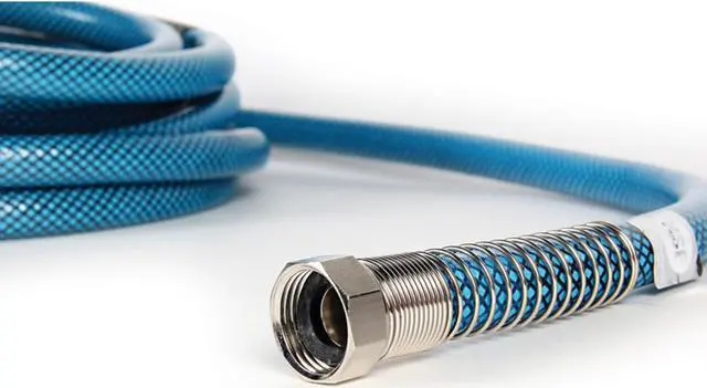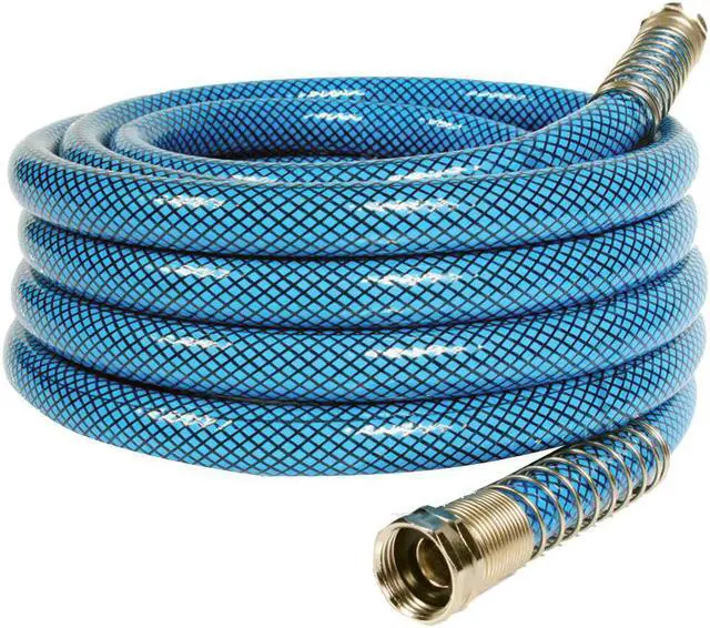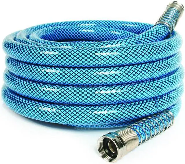 Heavy Duty reinforced 5/8" ID drinking water hoses are 20% thicker than our standard hoses. Rated for 300 PSI and NSF listed. BPA free. Anti-kink design features machined fittings and strain-relief ends for added durability. Drinking water safe.