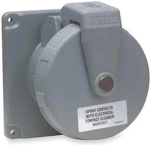 Pin and Sleeve Receptacle, Current Rating 100 A, Flange Type Flanged, Grounding Style IEC, IP Rating IP67, NEMA Enclosure Rating 4X, Number of Gangs 1, Number of Poles 3, Number of Wires 4, Phase Single, Shrouded Yes, Voltage Rating 125/250V AC, Cap Type Spring-Loaded Cap, Connection Orientation Straight, Face Diameter 4.71 in, Grounding Grounded, Housing Color Gray, Housing Material Thermoplastic, Market Industrial, Maximum Wire Size 1/0 AWG, Minimum Wire Size 3 AWG, Power Indicating Light No. This item has been restricted from sale in the following state (s): []