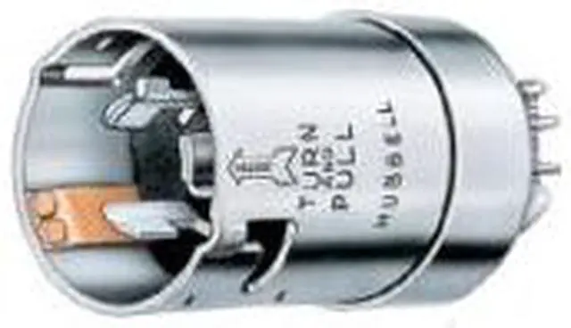 This secure gray locking plug from Hubbell Wiring Device-Kellems will keep your equipment from disconnecting. This locking plug has a Non-NEMA, 4 Blade configuration with a voltage of 125/250VAC and an amperage of 50. It has 3 poles and 4 wires. It has 3 phases. It is made of nickel plated brass material. This has a grade of marine. This locking plug has a corrosion resistant.